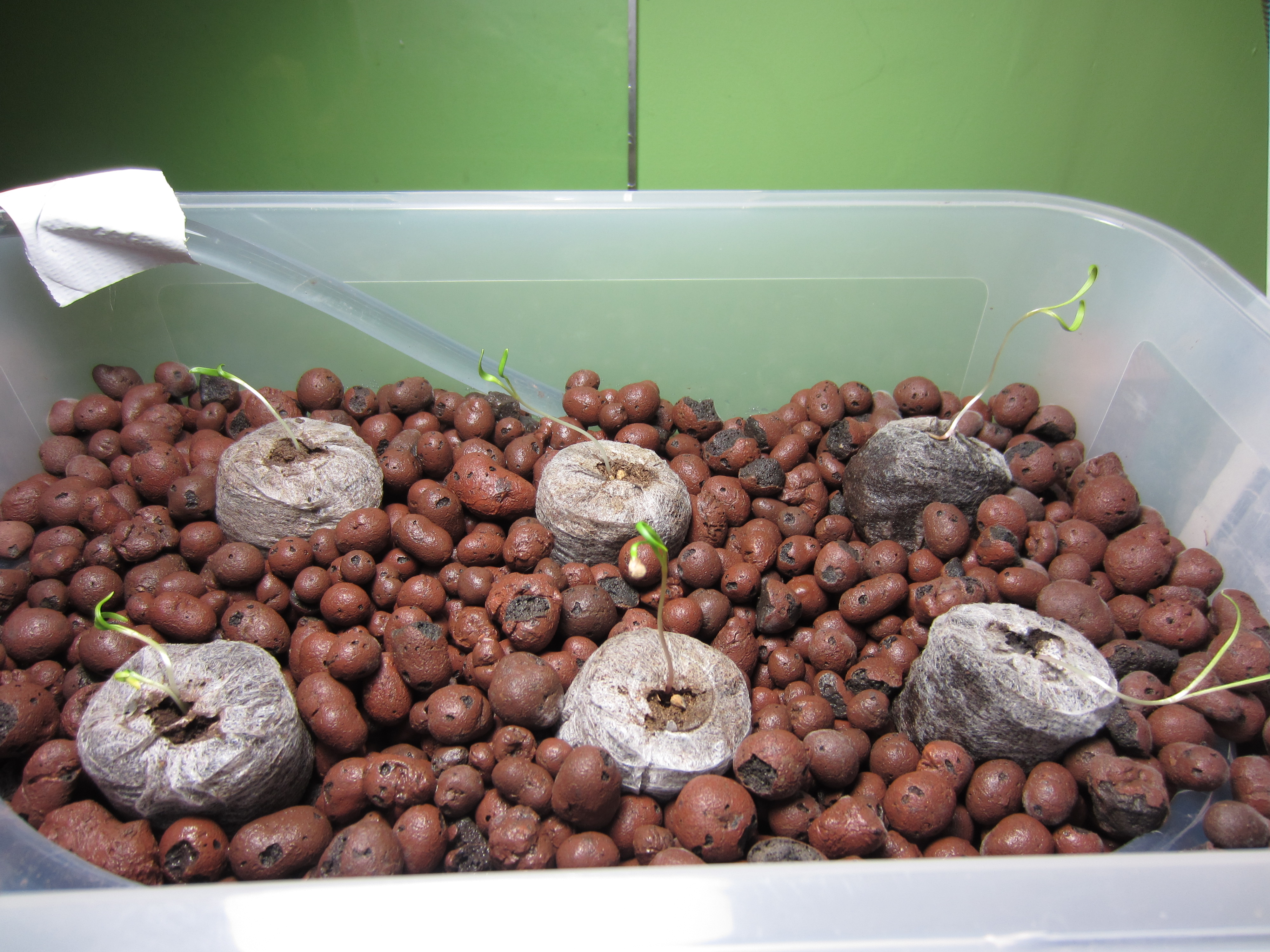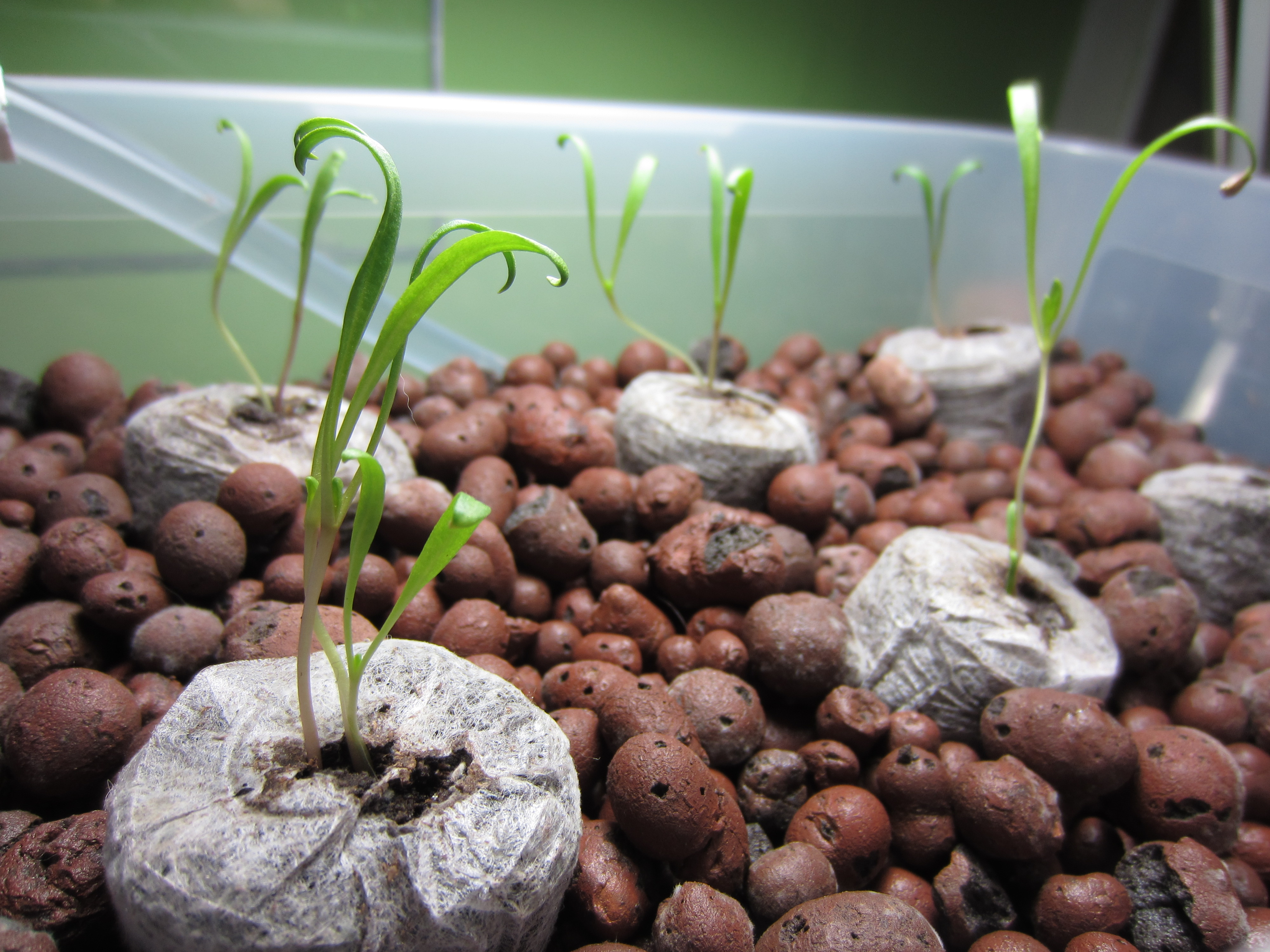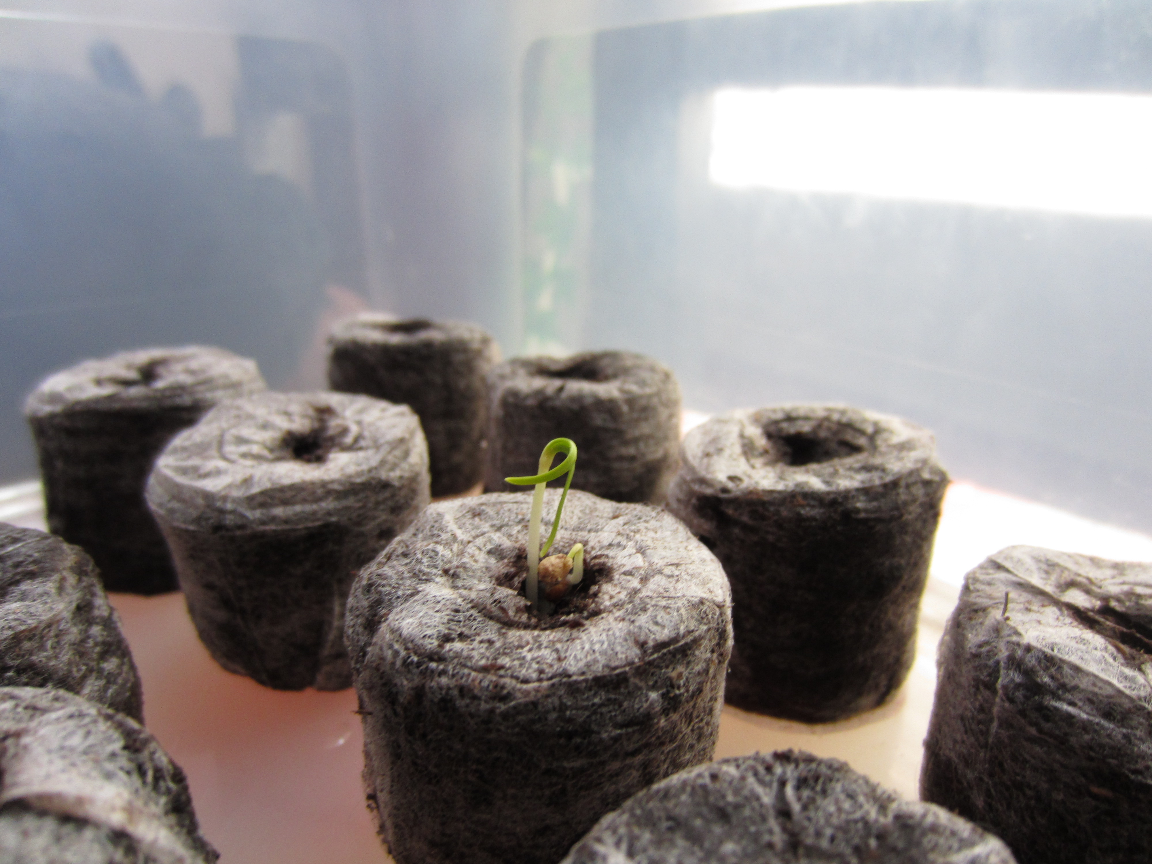 One of the issues I ran into was not enough heat and not enough light. Two of the pots molded, so I doubled the size of the heater in the tank, added a grow light, and replaced the moldy pots. Much better!