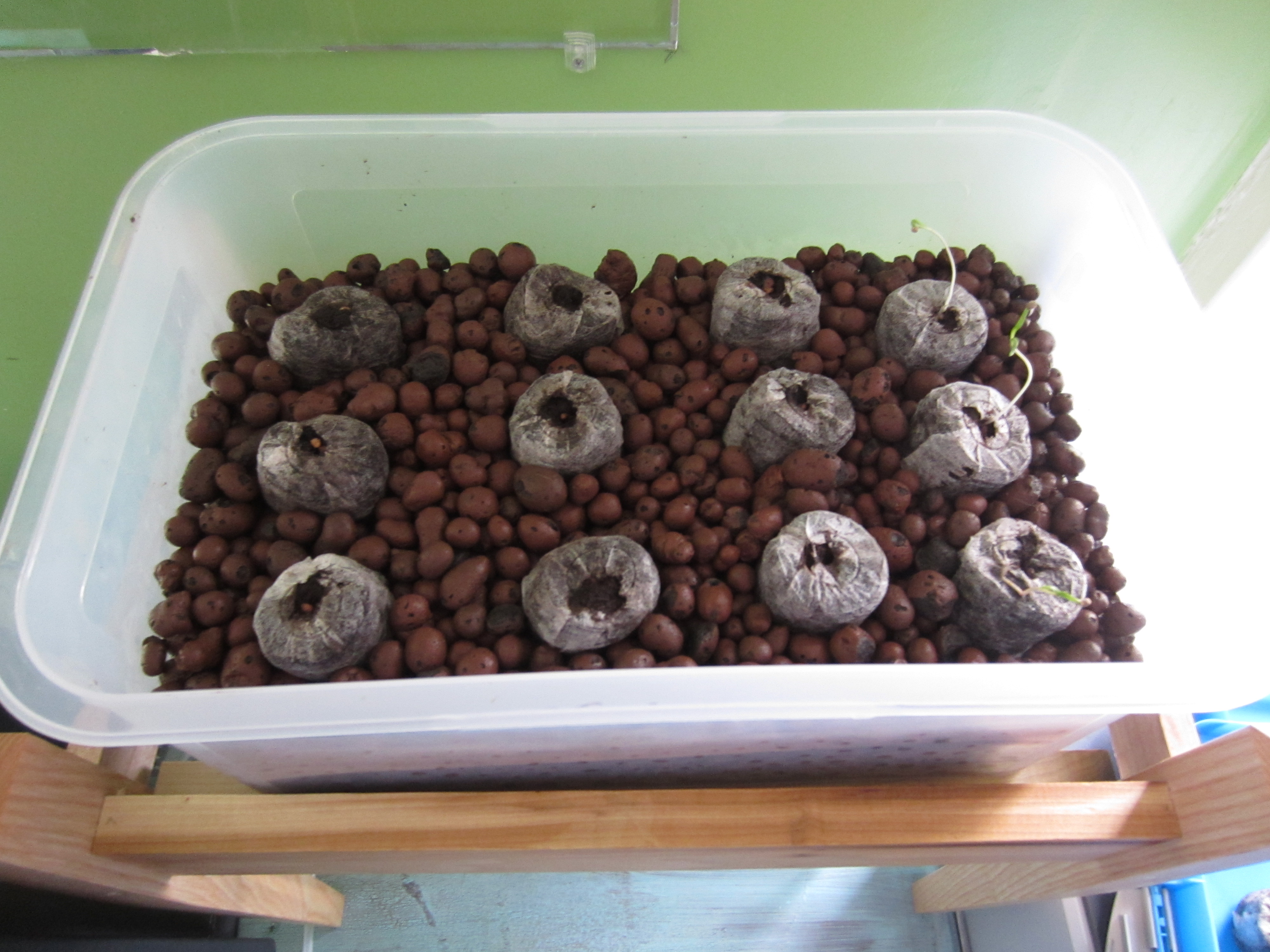 My first attempt at adding the pots to they hydroton was a bit of a disaster. I tried to shove in twice as many as could comfortably fit and ended up squishing many of them.