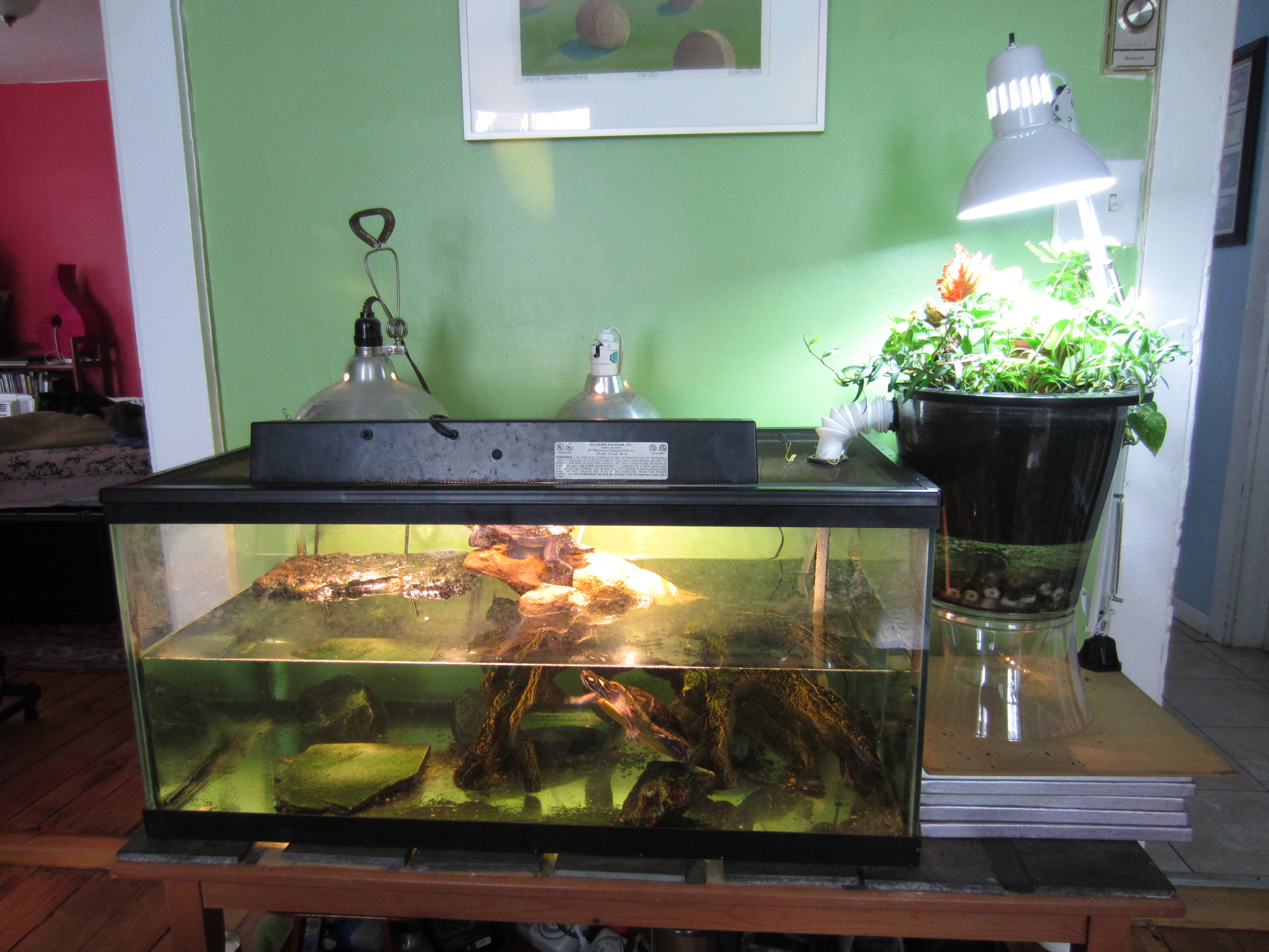 The turtle tank. Since the canister filter I had broke, I’ve been doing 100% water changes every week. That’s 40 gallons of water every single week.