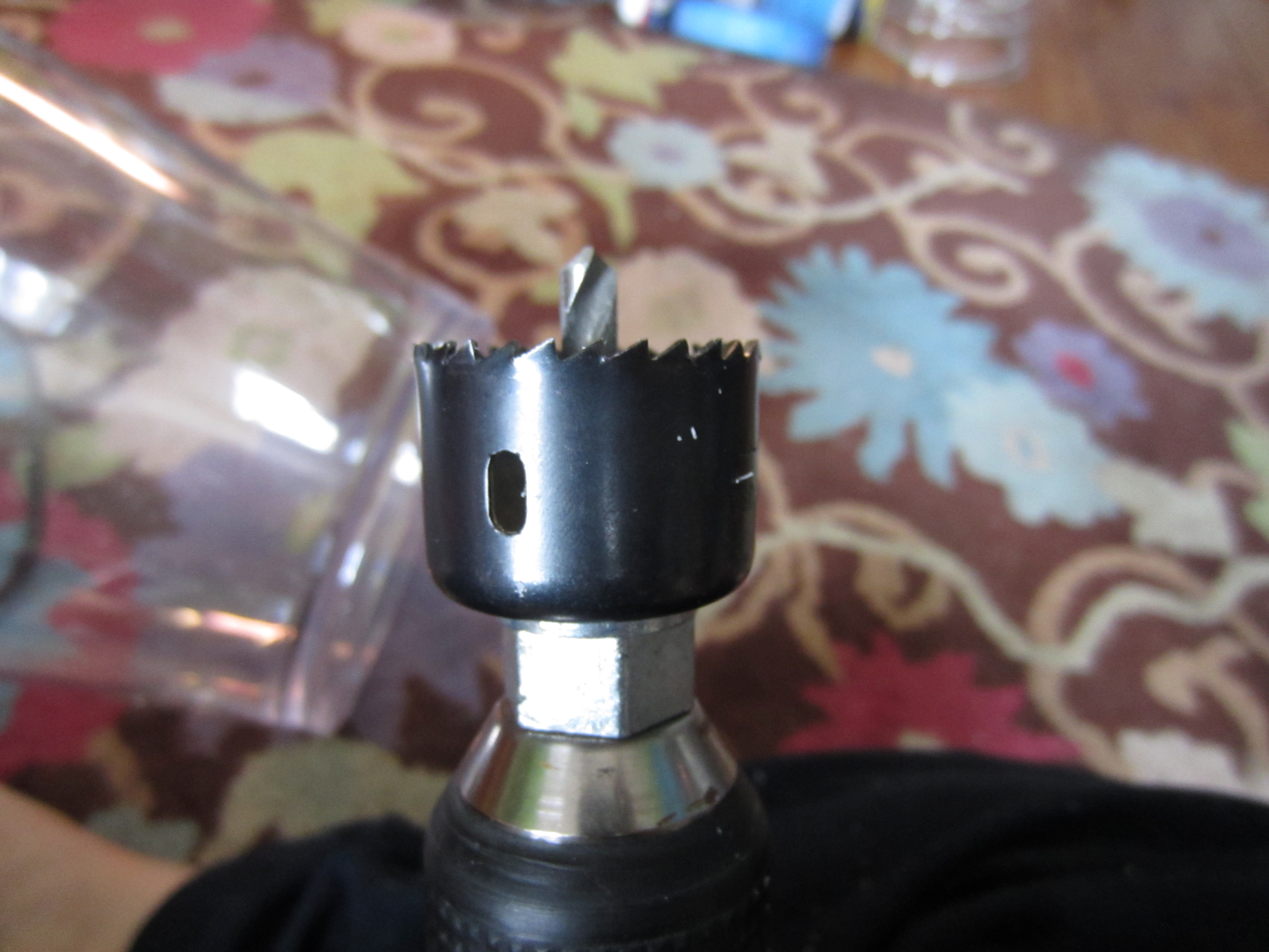 My beloved hole saw bit! You can see the center drill bit that I needed to pre-drill for.