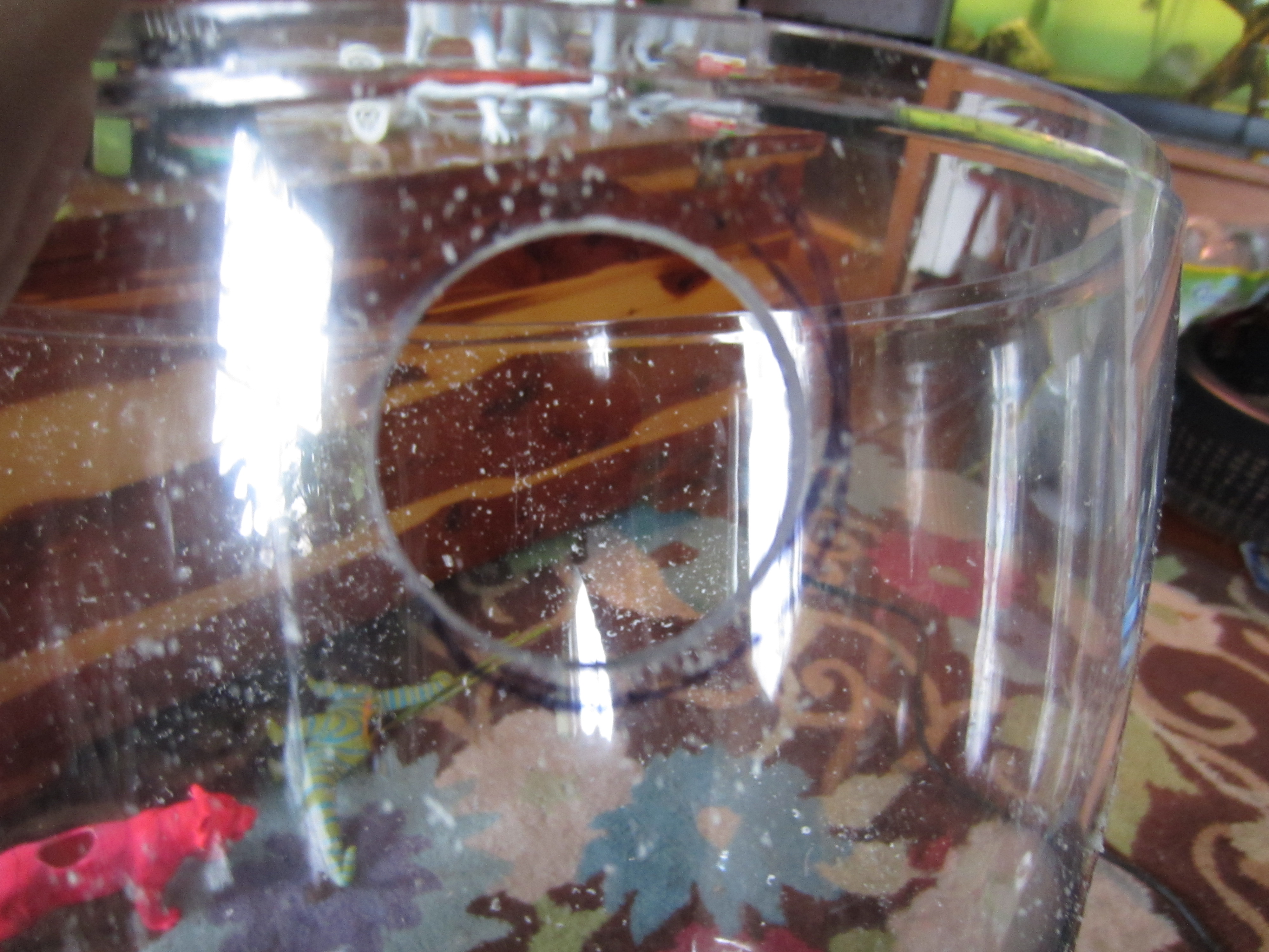 Success! The hole is complete. Right about now I looked like I’d been snowed on with acrylic dust. Use a mask, kids. I didn’t. Because I’m impulsive and not safety conscious.